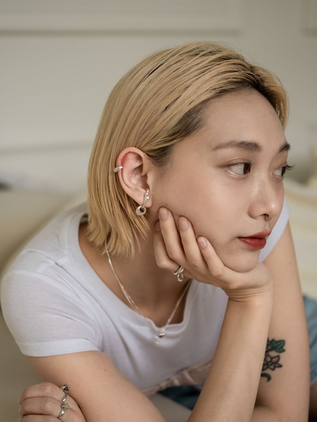 貼耳式的不對稱耳環,兩邊分別掛上喜歡的Tiny classic;)