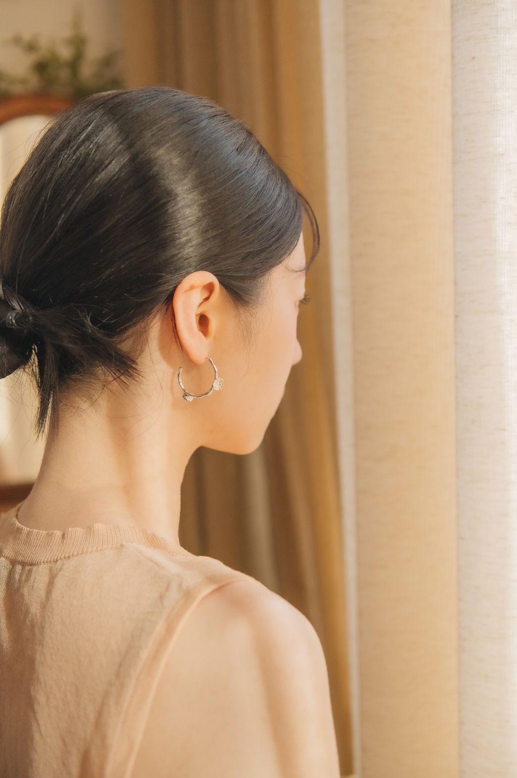 梅花樹是生花耳環中大小最適宜的中型尺寸,搭配不是太厚重的線條感,適合喜歡耳飾明顯的朋友,簡單又獨特的日常配戴。