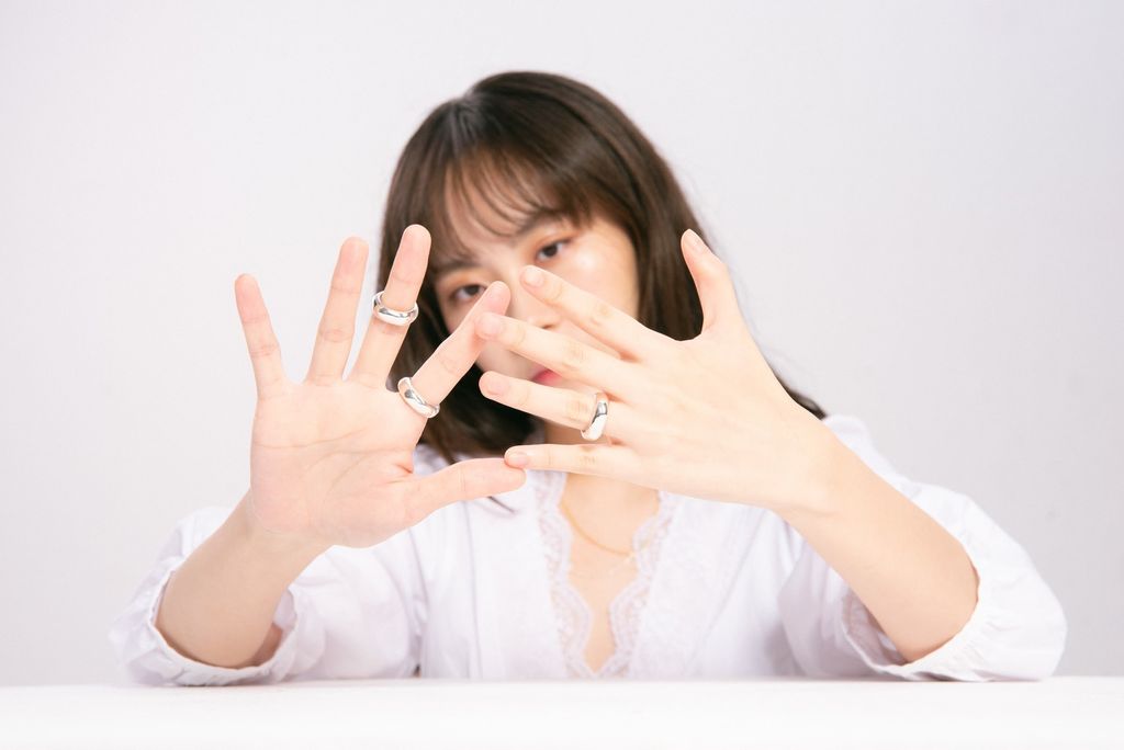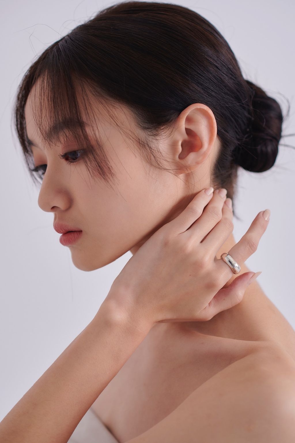 寬版有份量的戒指,乍看之下漣漪的線條不是很明顯,藉由周圍的光影,可以看到表面凹凸面的變化。