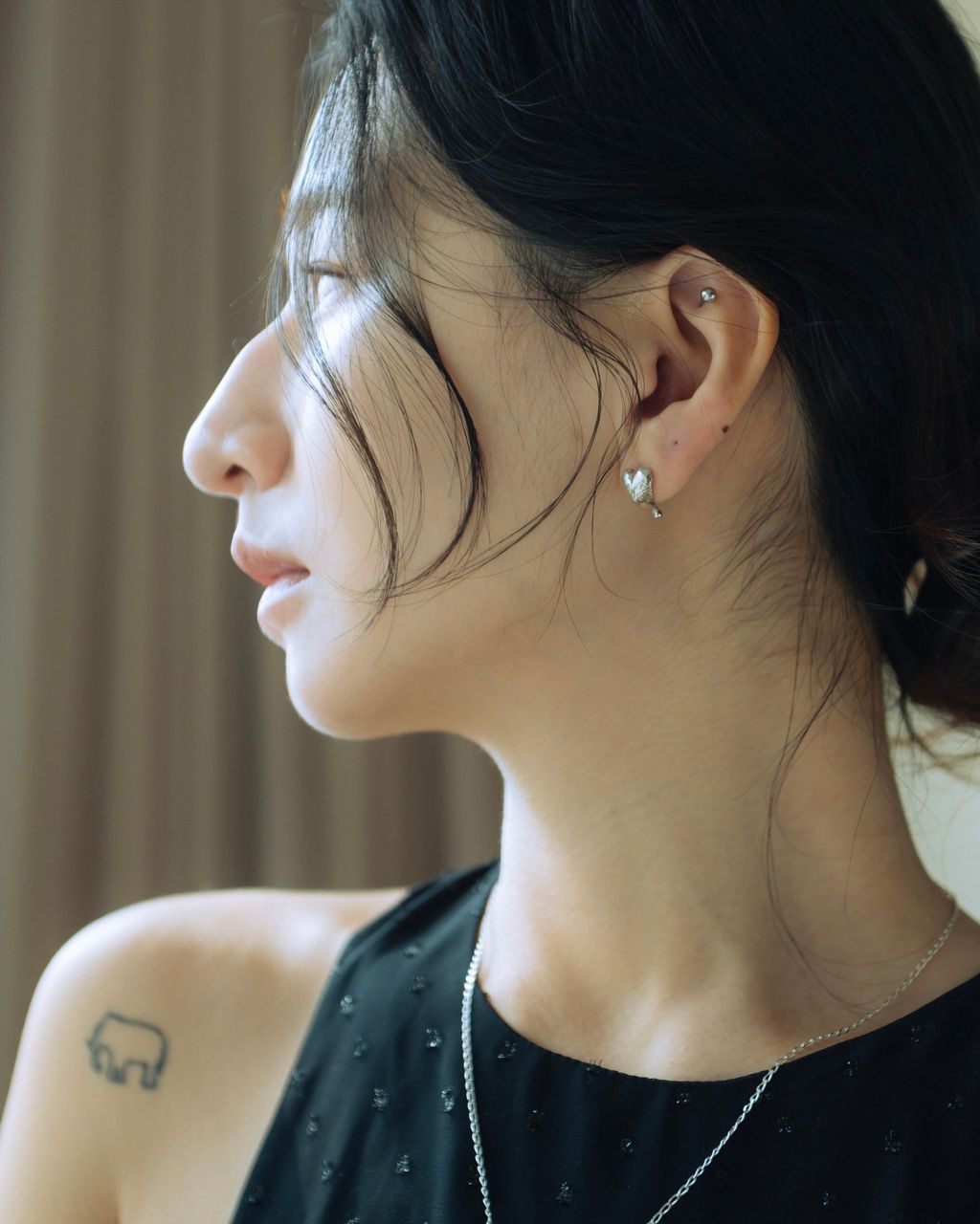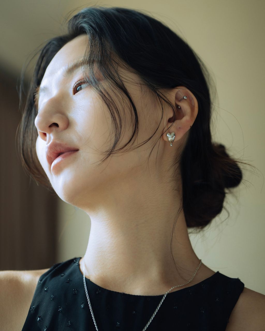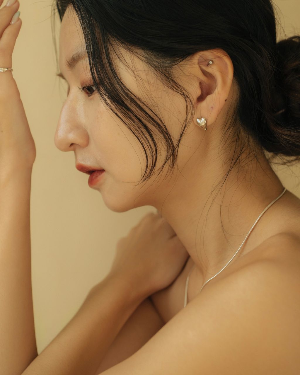 心型的火柴服貼耳垂,