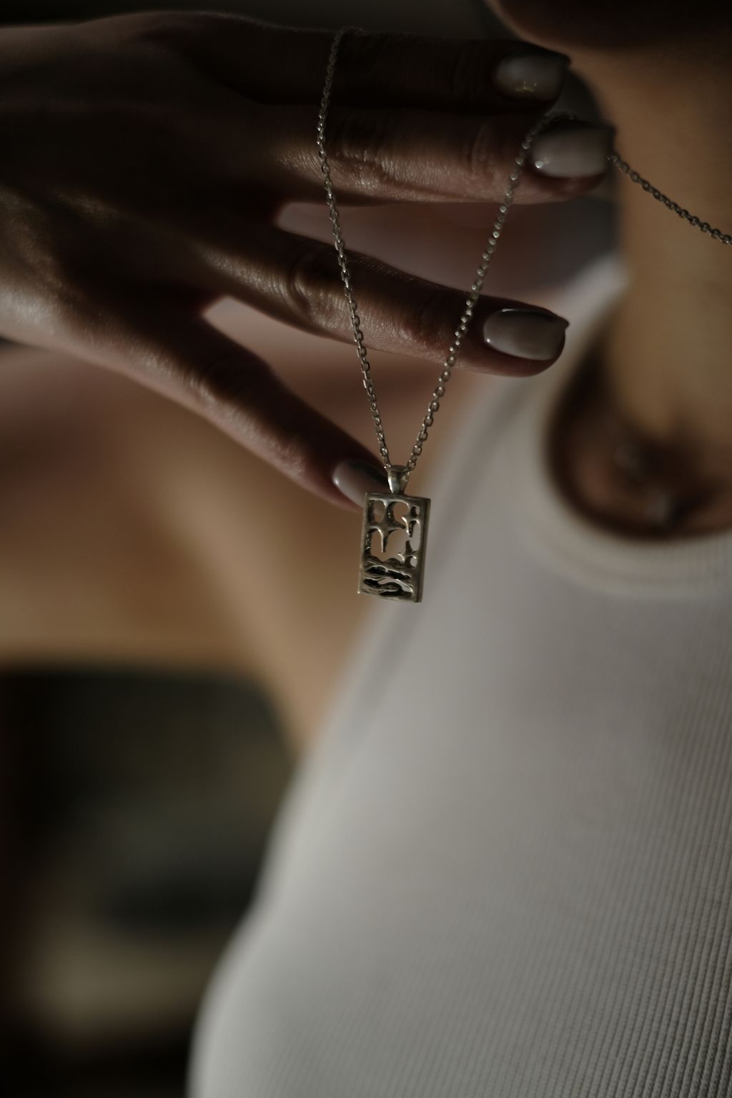 小小的長方形吊墜中,有著星空與河流,手工雕刻保留深淺不一的刻痕,簍空銀牌不顯厚重,給夏日一股清涼。
