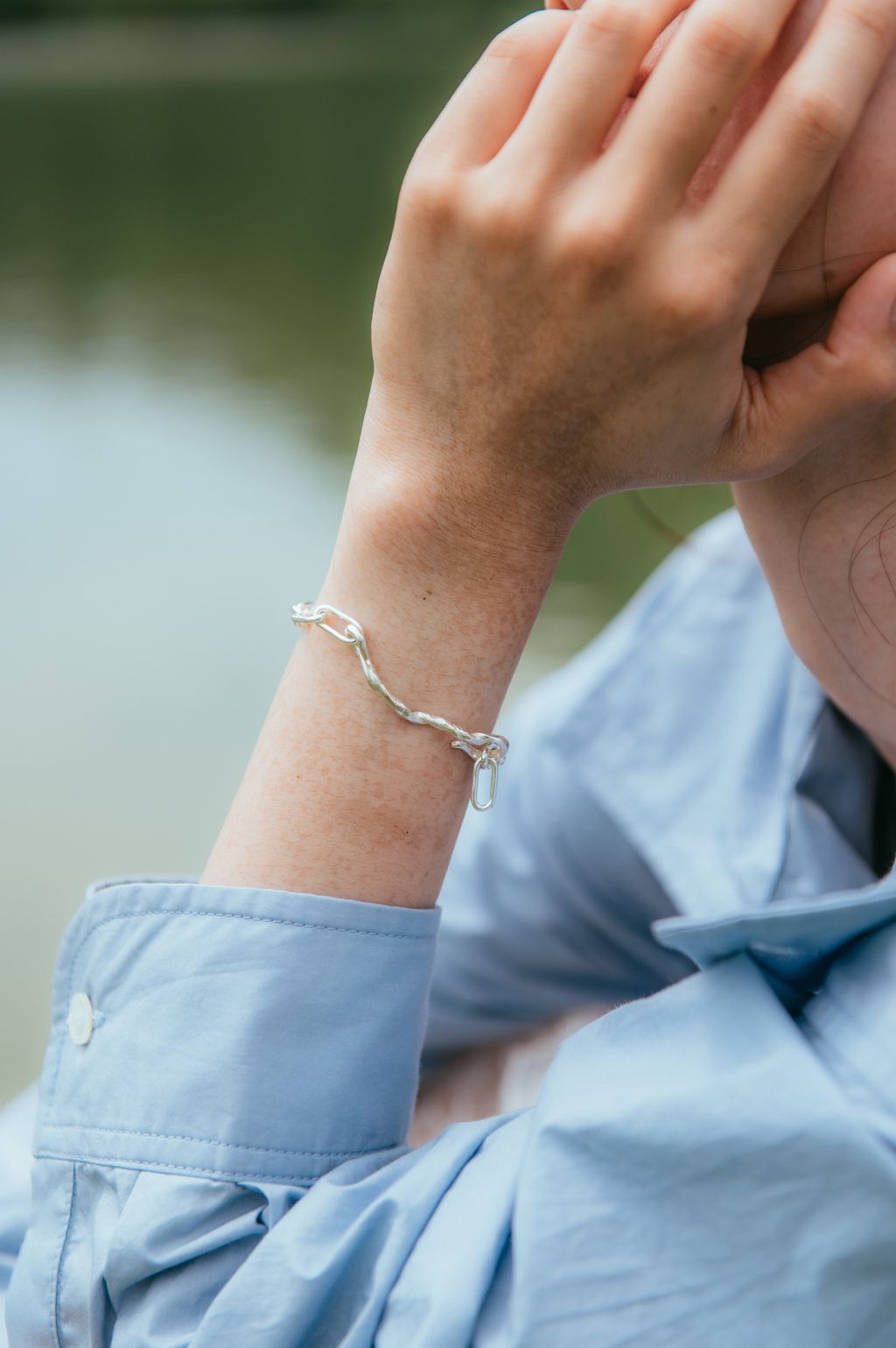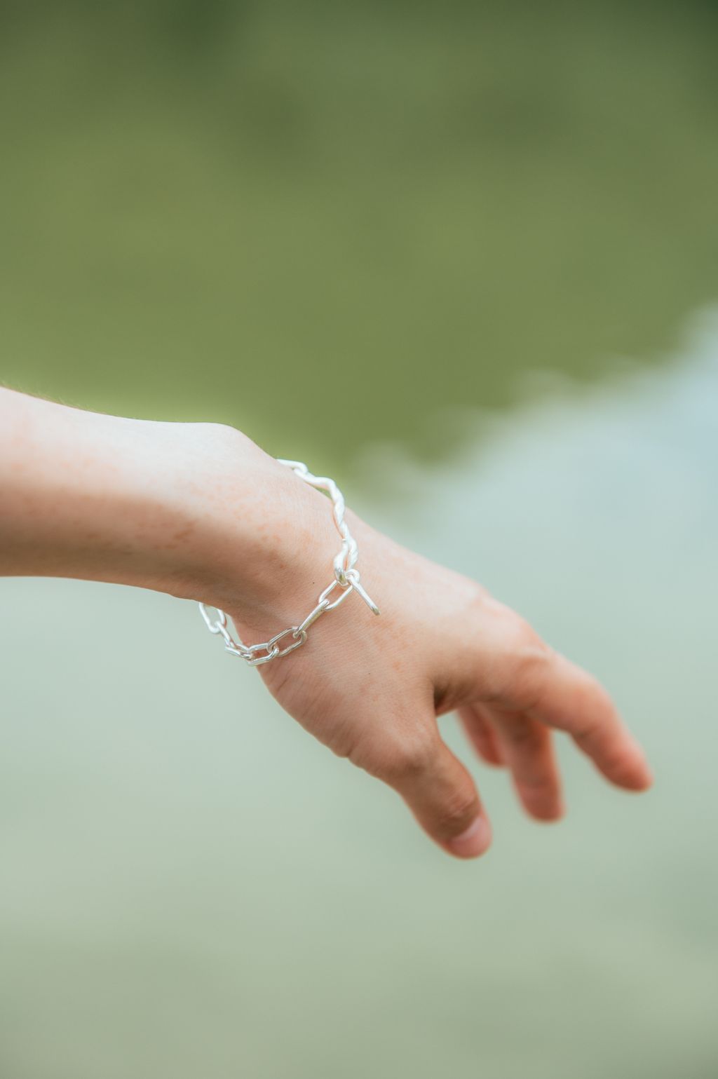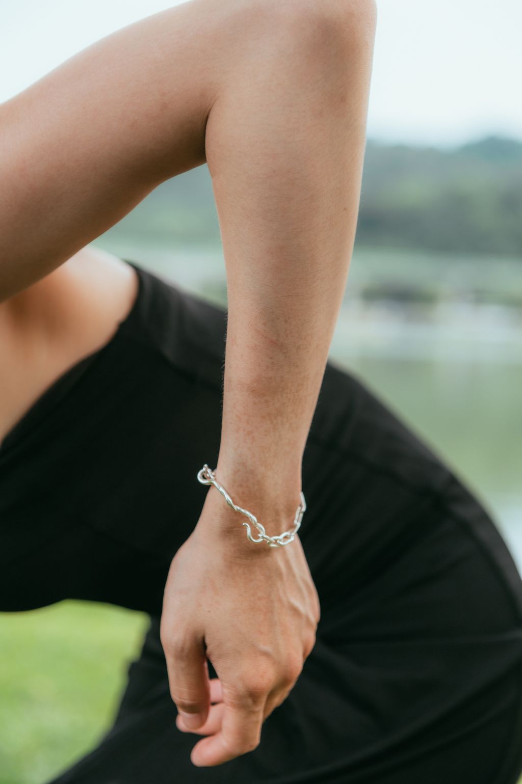 純手工的別緻手鍊,包含有份量的粗鏈條與優雅的扭結