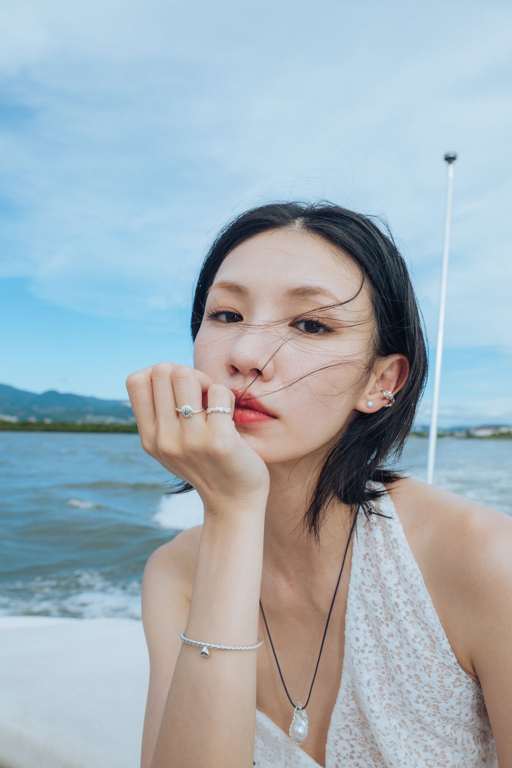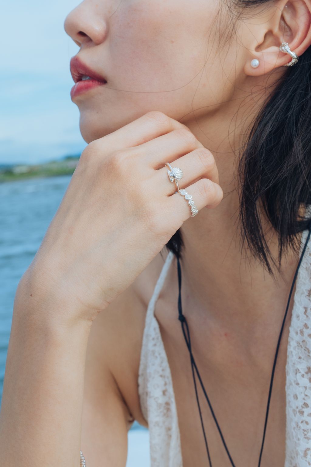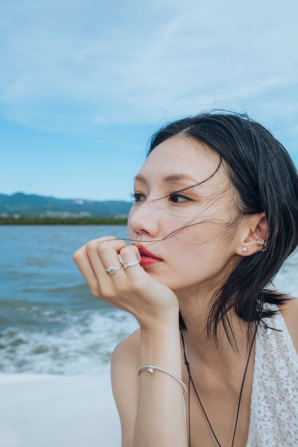 以連綿的渦旋圖騰環繞指間,如同風在海上留下的軌跡。圓環設計簡約卻富有韻律,佩戴時,像把「風」的自由流動留存在手上。