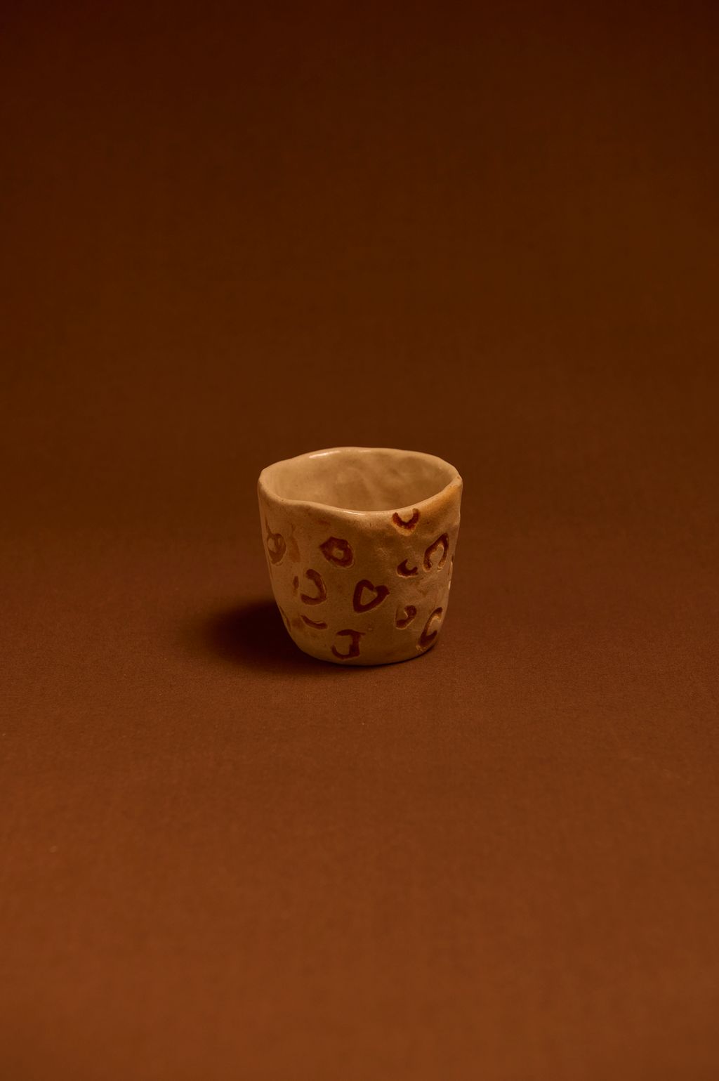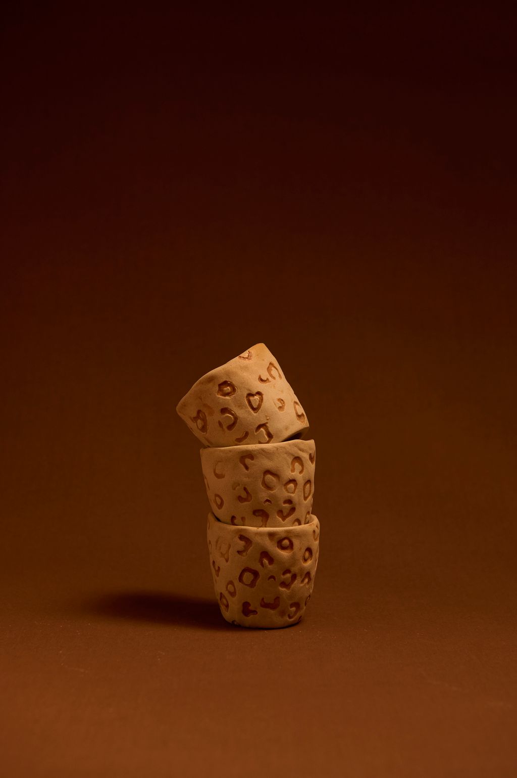 Whisper of Boldness|野性的紋理 —— 這款 Shot 杯承襲 a saving co. 經典 豹紋銀戒 的設計,將金工的細膩轉化為陶土的溫度,每道紋路為手工按壓而成,帶著隨性的自由感。
