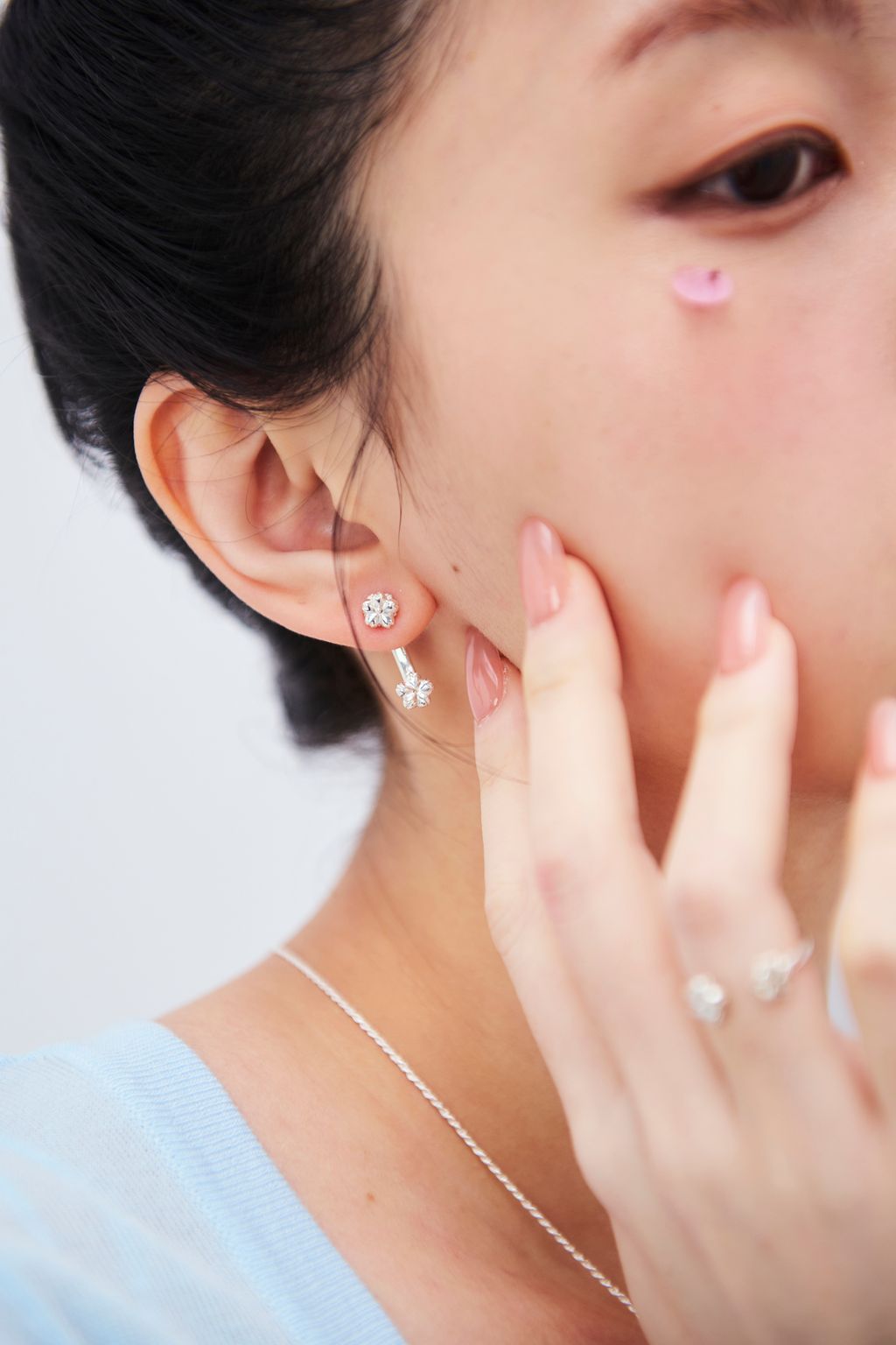 垂墜從耳後出現,視覺錯位搭配,