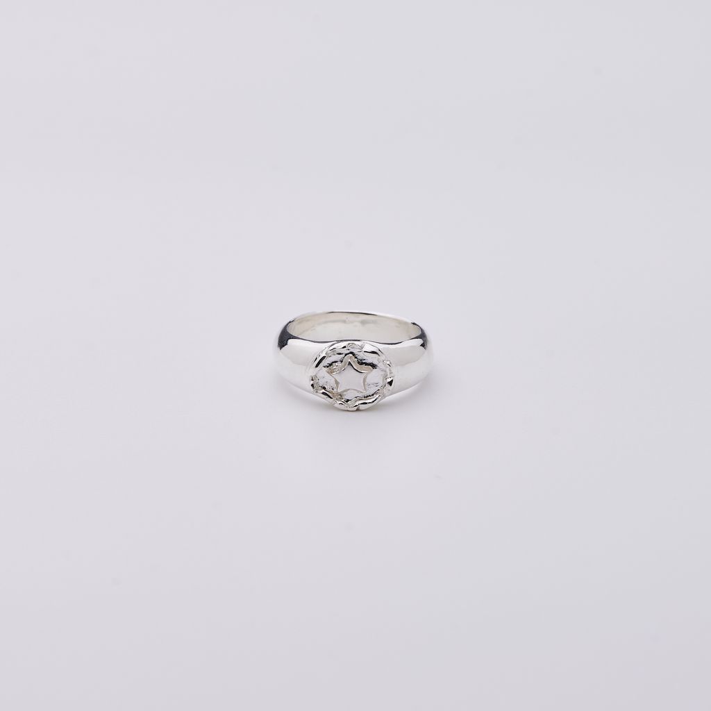 雲朵環繞著星星,胖胖的圖章戒指,雲朵亂中有序的排列,星星有朝氣的立在中央,ㄧ切都可愛的很有畫面。