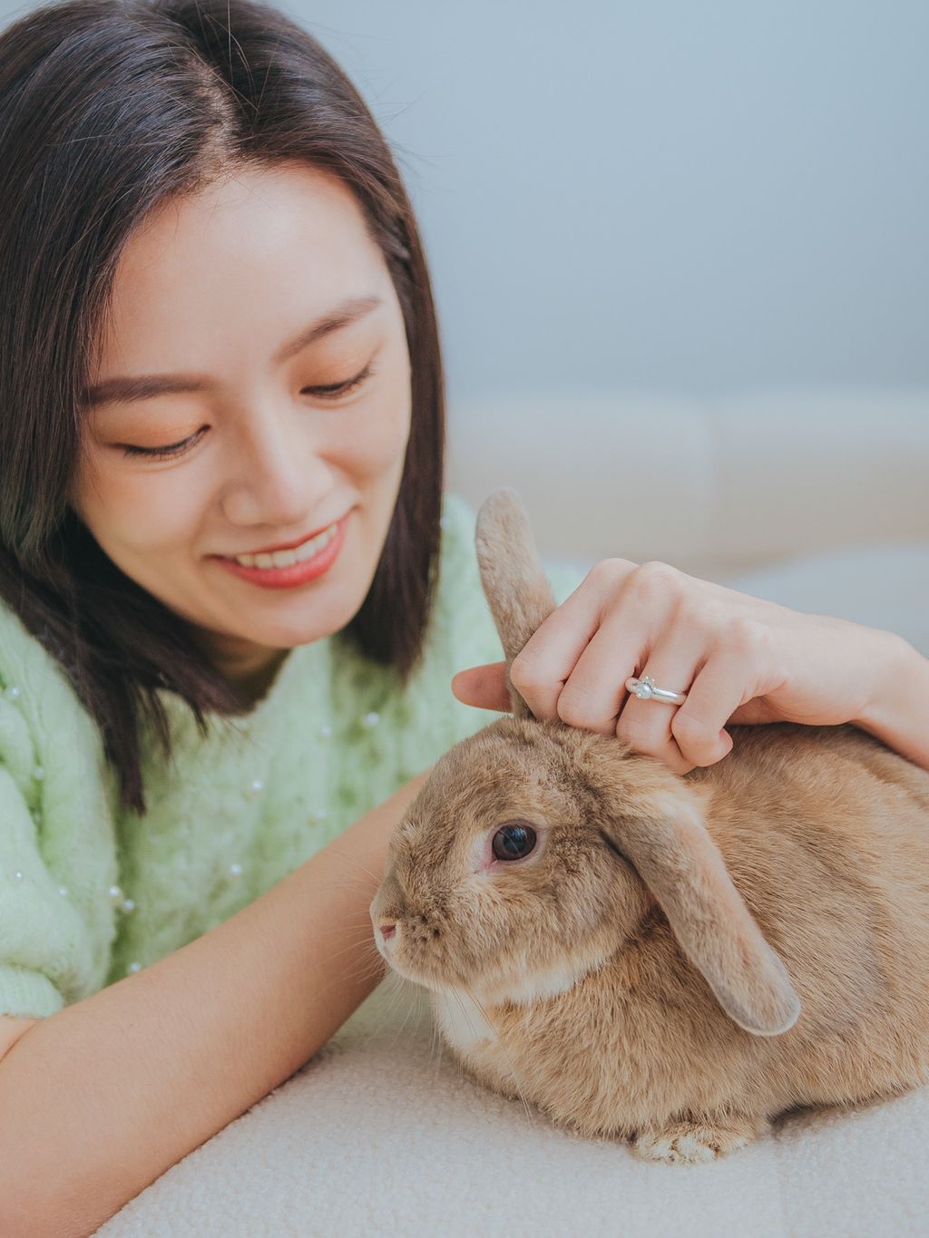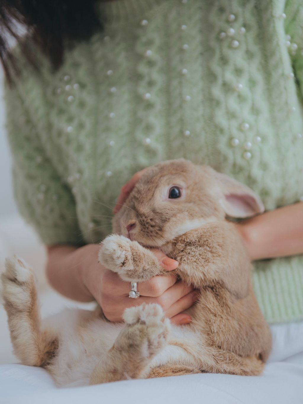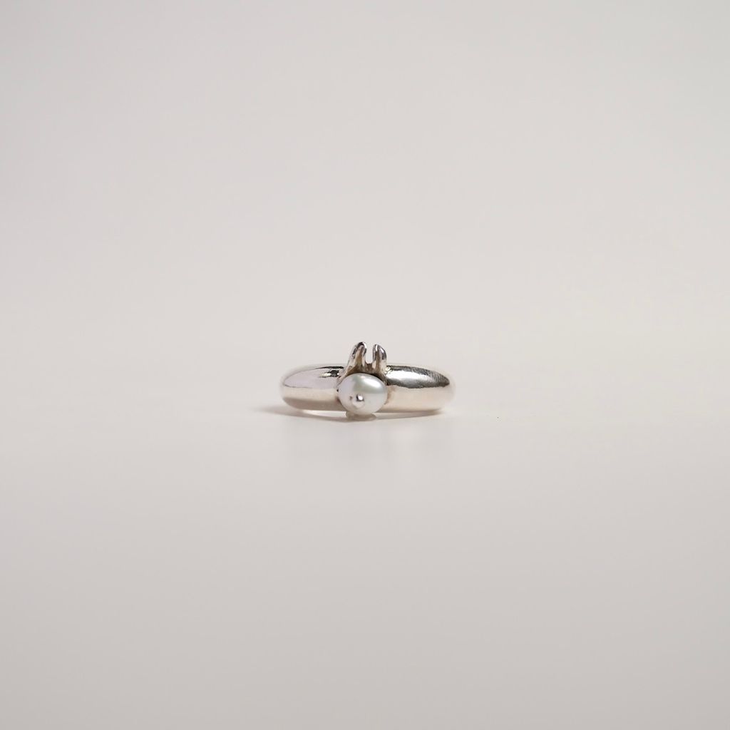 經典圓弧狀的戒身,搭配圓形白色珍珠,呼應兔兔的圓潤身材,