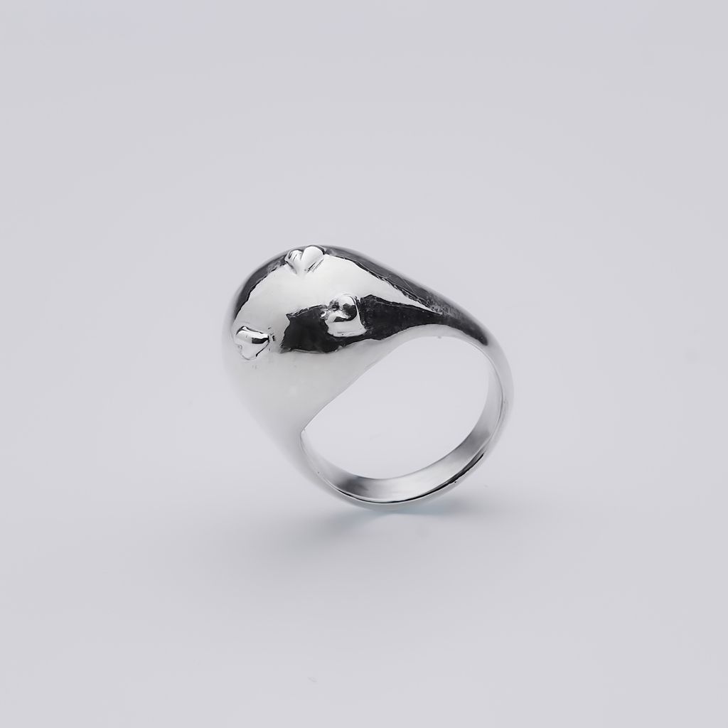 圓潤戒身,三顆愛心浮雕細節。