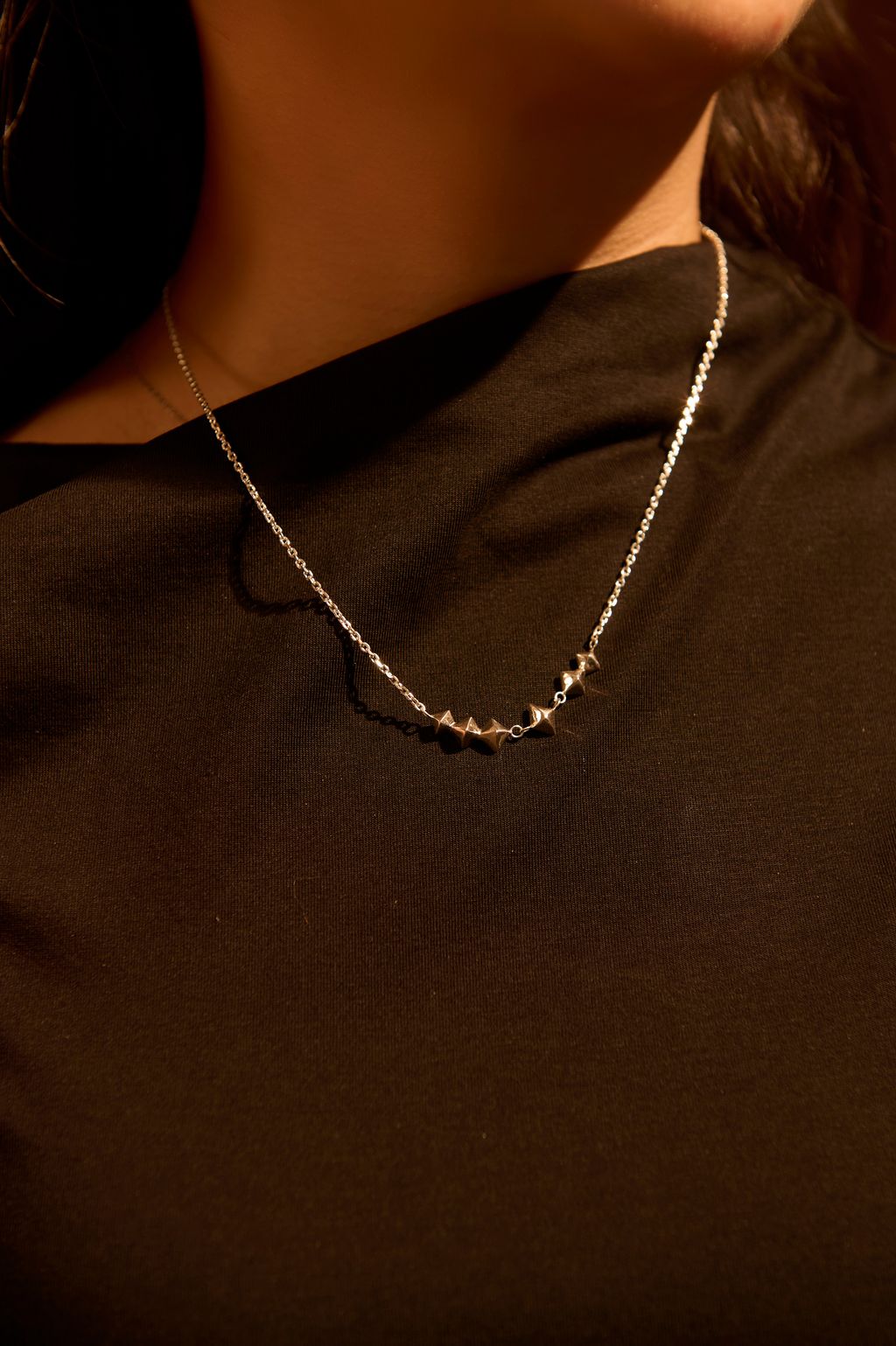 想製作一款低調閃耀有垂墜擺動感的經典項鍊,由六顆經典芒星串起中性氛圍,並提供了不同長度的選擇,希望大家找到自己喜歡的垂墜度。