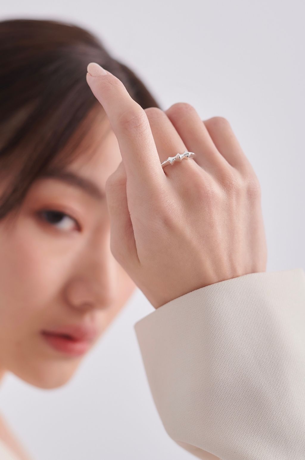 由經典四芒星戒指延伸的三芒造型,比單顆多了一點酷酷的感覺。