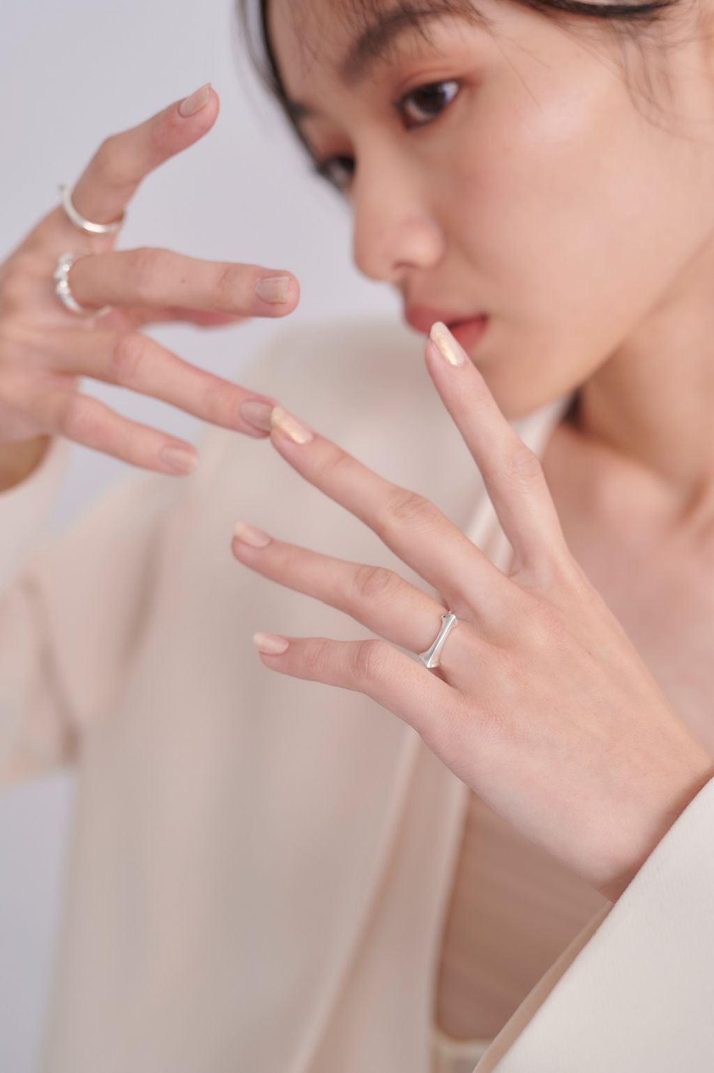 由經典四芒星戒指延伸的雙芒造型,一大一小在兩側相互呼應。